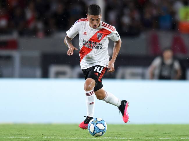 BUENOS AIRES, ARGENTINA - FEBRUARY 16: Juan Fernando Quintero of River Plate drives the ball during a match between River Plate and Banfield as part of Superliga 2019/20 at Antonio Vespucio Liberti Stadium on February 16, 2020 in Buenos Aires, Argentina. (Photo by Marcelo Endelli/Getty Images) / Marcelo Endelli