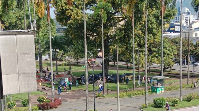 Indígenas de Balboa, Risaralda llegaron al Parque Olaya a instalar campamentos / Foto: Suministrada comunidad
