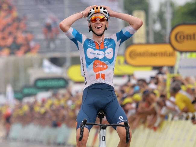 Los dos ciclistas del DSM fueron manteniendo las distancias sobre los favoritos, que solo en el tramo final parecieron decididos a echar abajo su aventura, pero no calcularon bien y los fugados entraron en meta con 5 segundos de ventaja sobre el pelotón liderado por el belga Wout van Aert y el esloveno Tadej Pogacar.