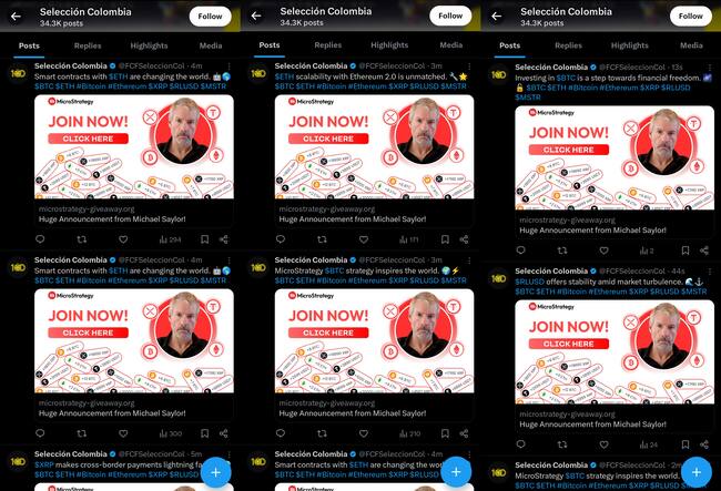 La Federación Colombiana de Fútbol confirmó el ciberataque. En el entretanto, otras cuentas, como la del Foro Internacional de Energía (IEF, por sus siglas en inglés) y otros usuarios de X, también han realizado las mismas publicaciones, en lo que parece una scam a gran escala.