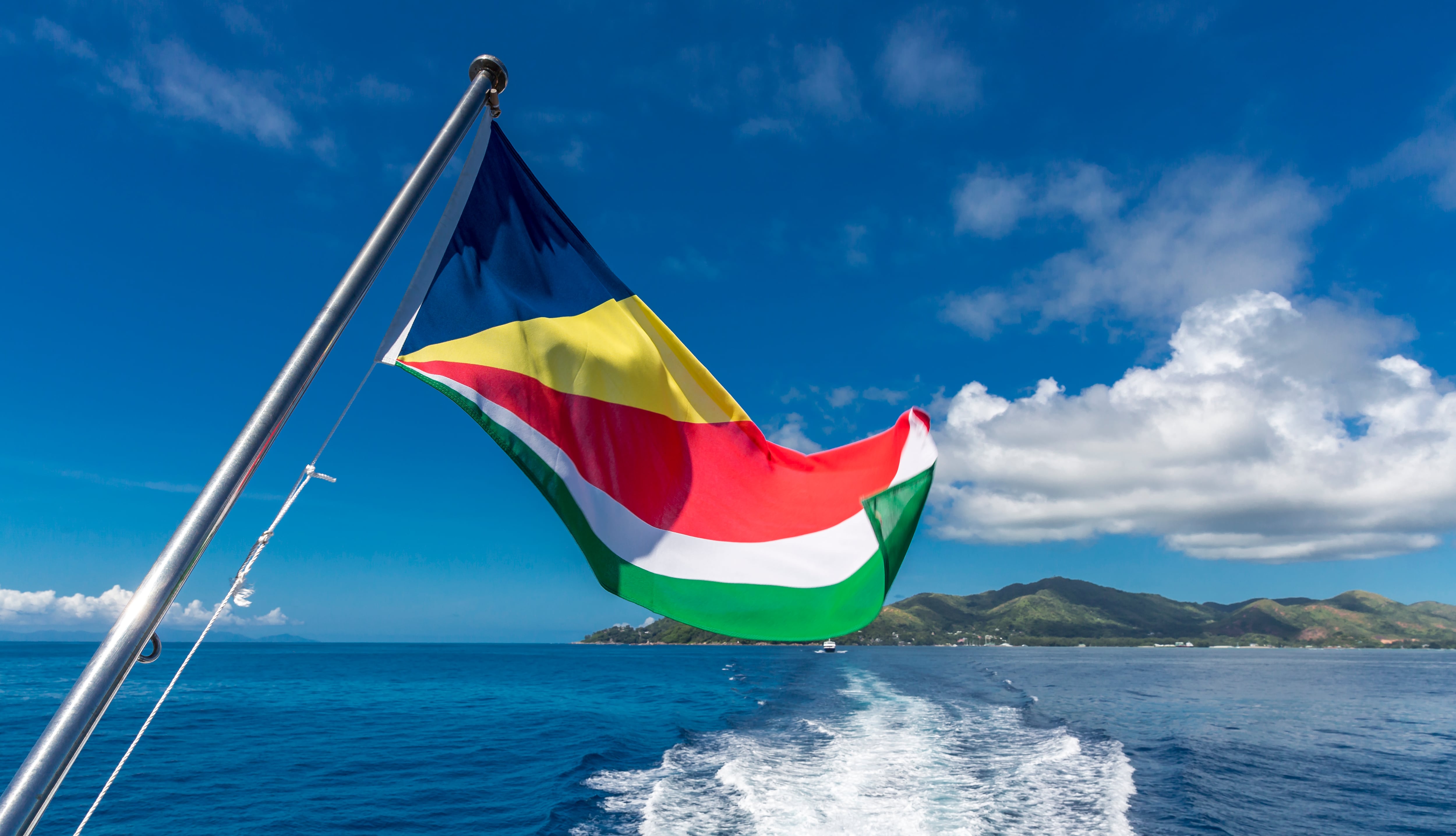 Fahne auf der Fähre, Insel Praslin, Seychellen, Indischer Ozean, Afrika / Westend61