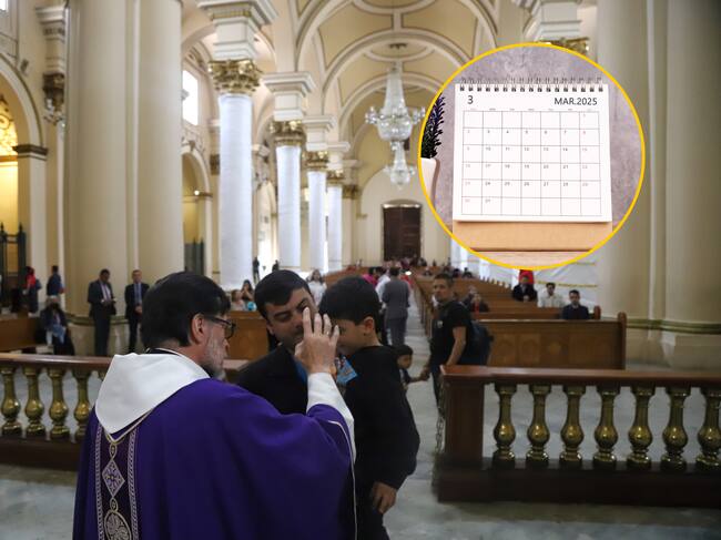 Imagen de referencia de la conmemoración del Miércoles de Ceniza en una iglesia en el centro de Bogotá (Colprensa/Lina Gasca) y un calendario de 2025 (Nora Carol Photography/Getty Images)