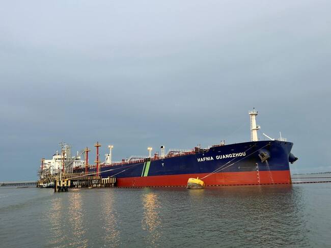 La entrega se realizó a la embarcación Hafnia Guanzhou, la cual fue aprovisionada con 195 mil barriles de nafta y 300 mil barriles de diésel para camiones y carros particulares.
