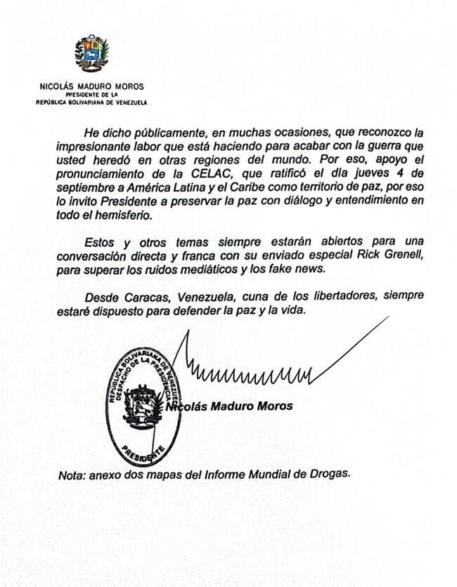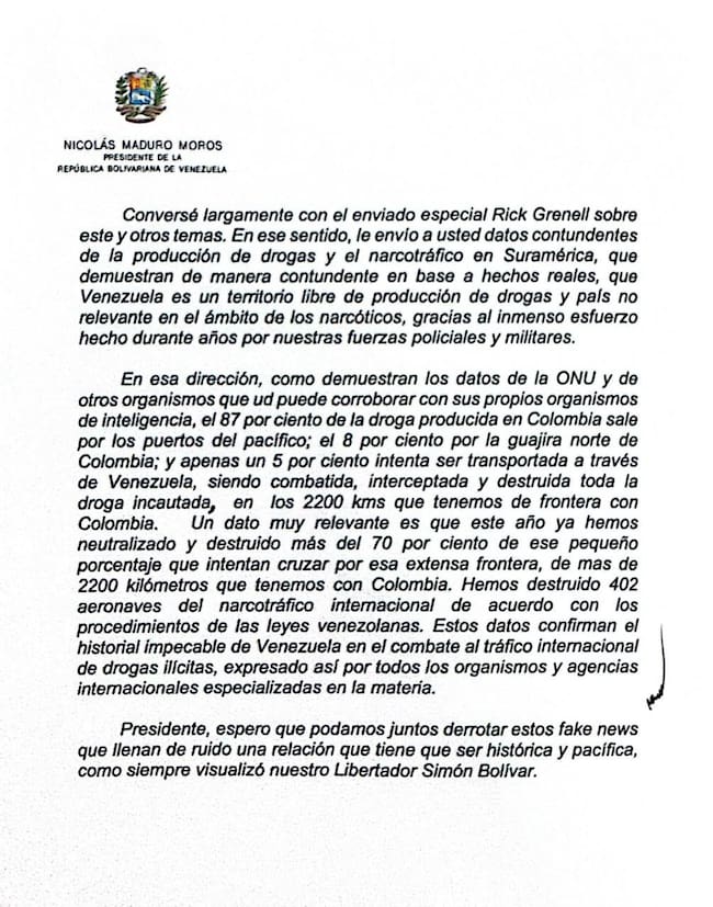 Esta es la carta que Nicolás Maduro le envió a Donald Trump