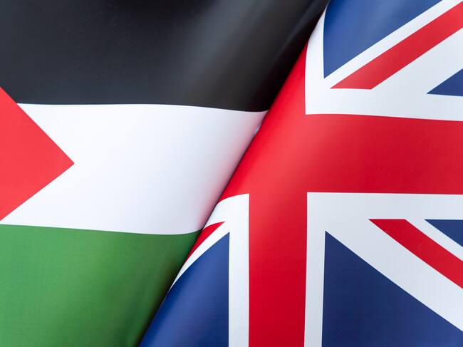 Bandera de Reino Unido y Palestina. Foto: Getty Images / Diy13