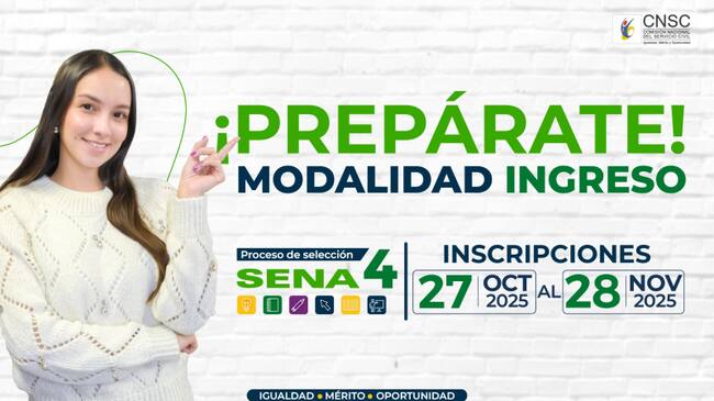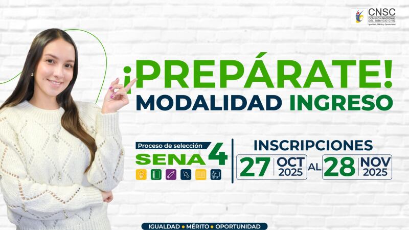 La Comisión Nacional del Servicio Civil (CNSC) inició la etapa de inscripción a las vacantes de modalidad ingreso del concurso SENA 4. Cabe recordar que, con este proceso, miles de aspirantes buscan avanzar en su carrera pública o integrarse al Servicio Nacional de Aprendizaje.
