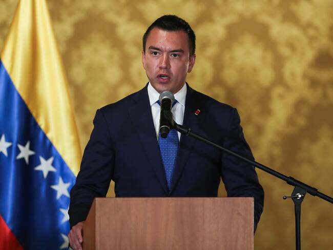 AME4698. BOGOTÁ (COLOMBIA), 23/05/2025.- Fotografía de archivo del 28 de enero de 2025 del presidente de Ecuador, Daniel Noboa, hablando en el Palacio de Gobierno en Quito (Ecuador). Noboa, el presidente más joven de Latinoamérica y de la historia democrática de Ecuador, iniciará este sábado un nuevo mandato (2025-2029) convencido en poder marcar una época para el país, tras haber pasado en apenas año y medio de ser un 'outsider' de la política a consolidarse como un líder de "mano dura", tildado de autoritario por sus adversarios, y capaz de tomar con firmeza medidas polémicas e impopulares sin temor a las consecuencias. EFE/ José Jácome / Jose Jacome (EFE)