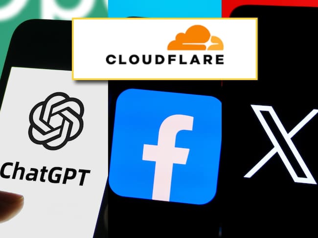 Cloudfare, ChatGPT, Facebook y X. Fotos: Getty Images.